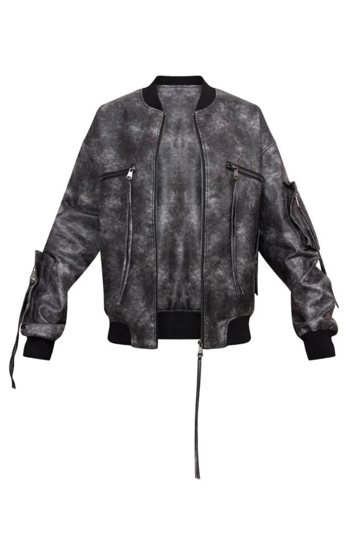 Elevate your new season wardrobe with this charcoal extreme distressed faux leather bomber jacket. Brought to you in a charcoal hue faux leather material with an extreme distressed detail, this bomber jacket is calling your name. Style with a pair of shorts and white vest top for a chic finish we can’t get enough of. It’s a yes from us.