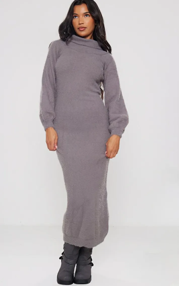 Take your everyday look to the next level with this charcoal eyelash knit bardot split maxi dress perfect for your everyday styling and beyond. Brought to you in a charcoal eyelash knit material with a split design and a maxi length, we simply cant get enough. With its versatile style this dress is sure to be your new go-to. Style with chunky boots and sunnies for a look that we cant get enough of.