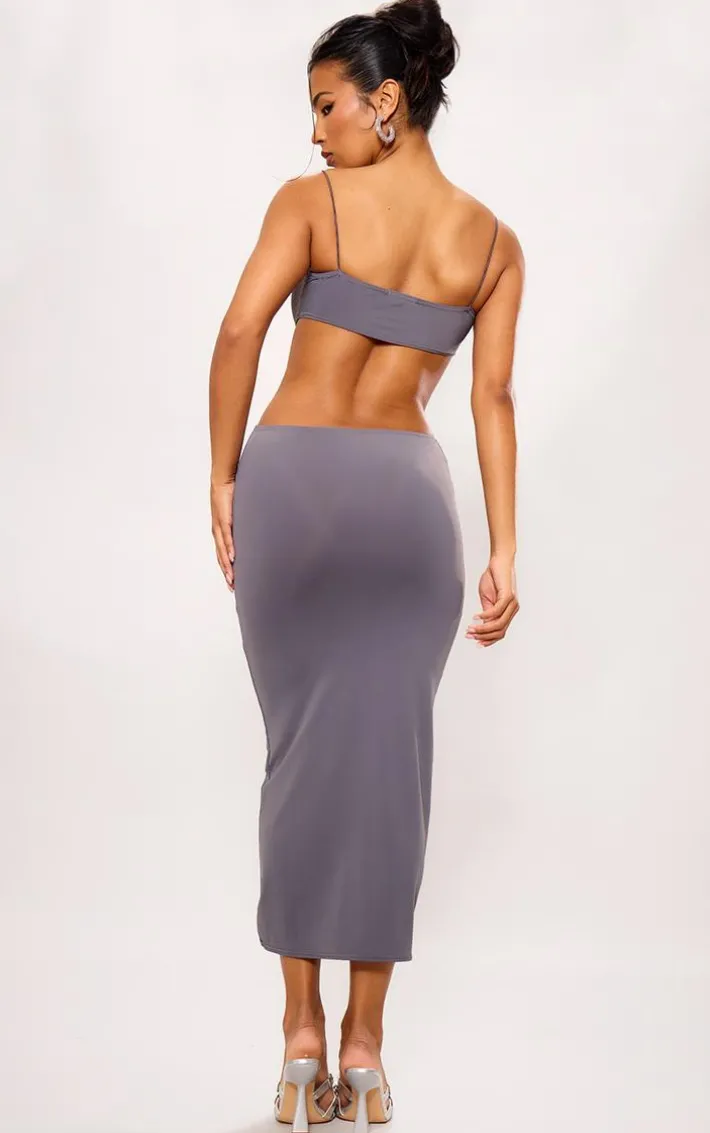 Take your weekend wardrobe that extra mile with this charcoal grey cut out back bodycon midi dress, get ready to be at the center of attention. Brought to you in a charcoal grey material, a cut out back and a figure-worshipping fit, this dress is here to solve all your styling dilemmas. Just add slip-on heels and a clutch bag for a look that is perfect for your next event.