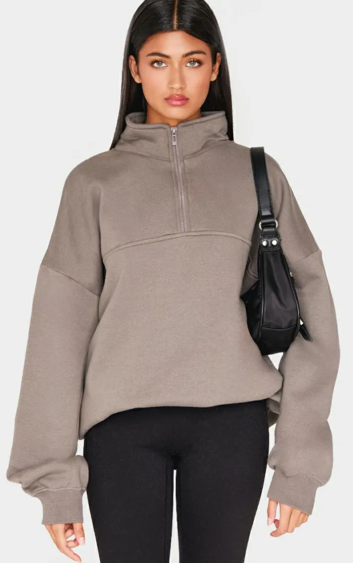 Keep it chilled with this charcoal print high neck quarter zip Sweatshirt. Brought to you in a charcoal material with a print design and a high neck quarter zip detailing, perfect for those on the go days. Team this Sweatshirt with a pair of leggings and comfy sneakers to finish off the look.