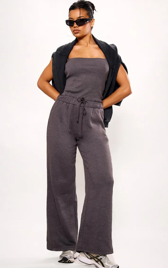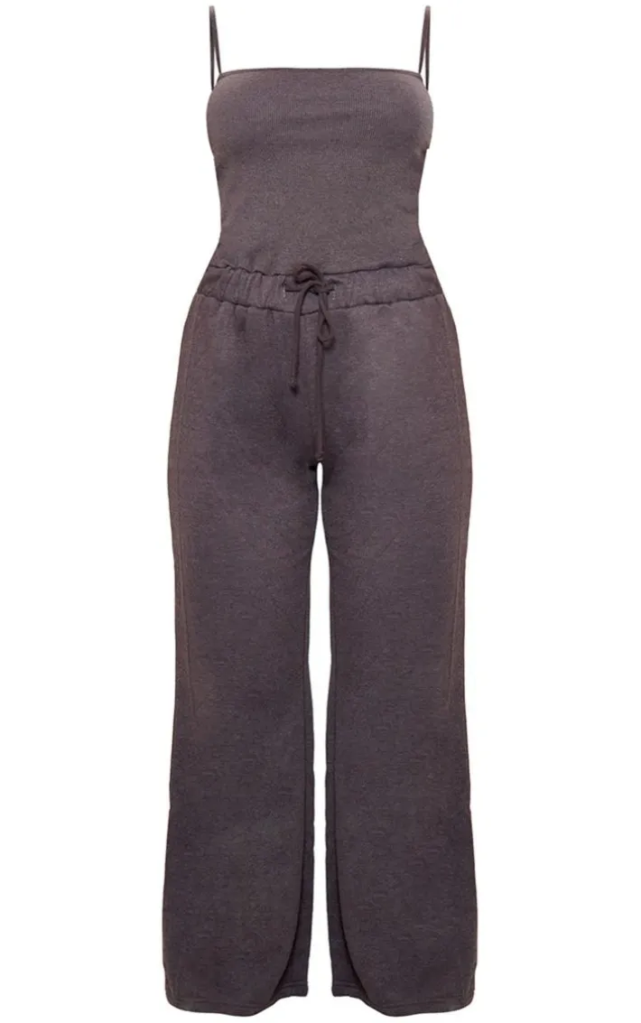 Hit refresh on your new season wardrobe essentials with this charcoal rib elasticated tie strappy jumpsuit, you won’t be able to resist. With a charcoal hue ribbed material, an elasticated tie design and a relaxed fit, this jumpsuit is here to solve all your styling dilemmas. Pair with chunky sneakers and your fave accessories for an instant chic finish.