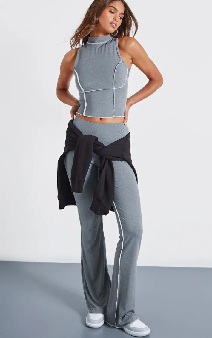 Amp up your off duty wardrobe with this charcoal seam detail high neck sleeveless long top. Brought to you in a charcoal hue material with a seam detail, high neck feature and sleeveless design, how can you not fall in love? Style with the matching flares and fresh kicks for a casual vibe we can’t help but obsess over.
