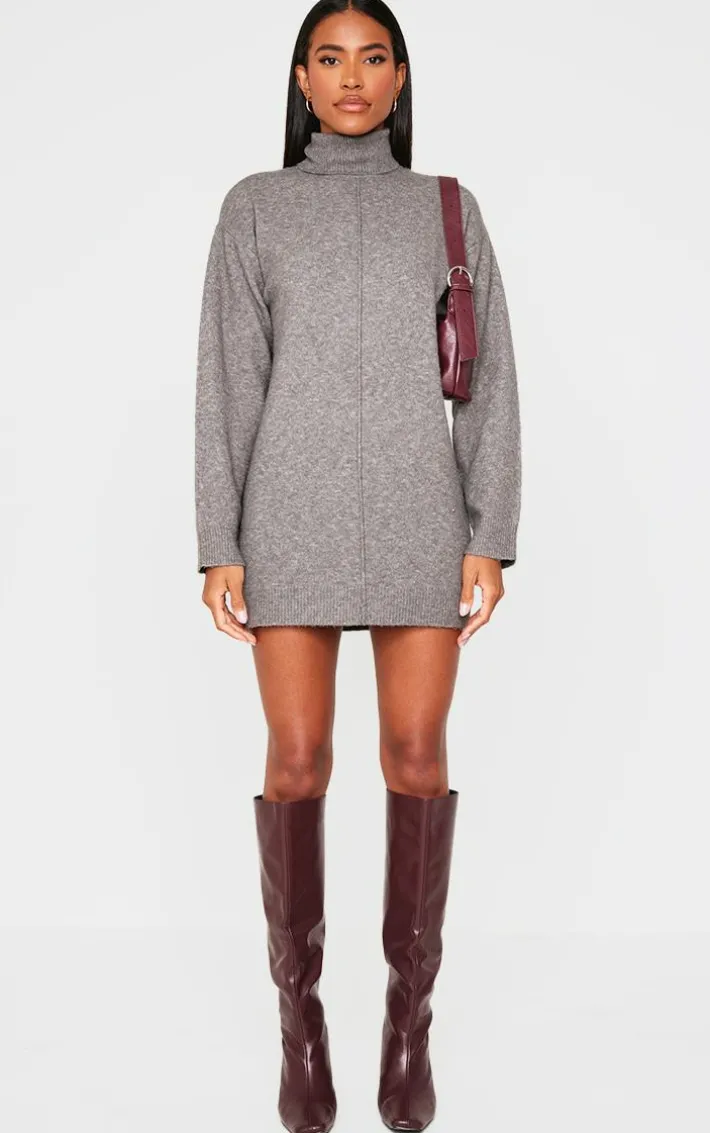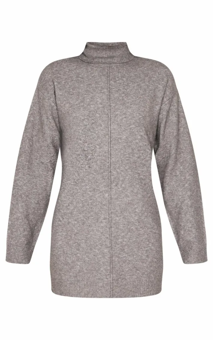 Take the stress out of everyday styling with this charcoal soft knit roll neck oversized seam detail sweater dress. Brought to you in a charcoal soft knit material with a roll neck design, seam detailing and an oversized fit, how can you go wrong? Just add heeled boots and a mini bag to elevate the look.