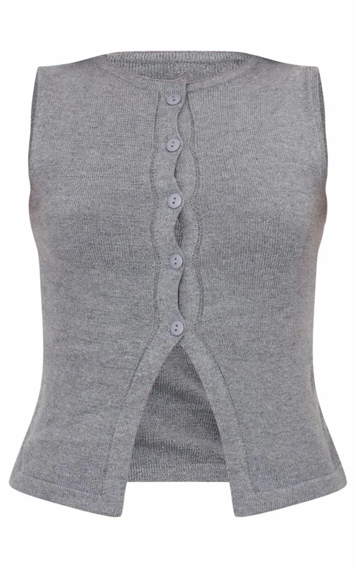 Cosy season layering has never been so easy as with this charcoal soft knitted button through vest. Brought to you in a button down vest design with a charcoal hue and soft knitted fabric, your everyday look is sorted. Style this knitted vest with jeans and comfy kicks for a laid back finish.