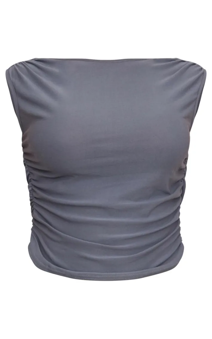 Take the stress out of weekend styling with this unreal charcoal soft touch backless side ruched top. Brought to you in a charcoal soft touch material with a backless fit and a side ruched detailing, you really can’t go wrong with this top. Style with the matching mini skirt and your fave heels for a look that will have eyes on you for all the right reasons.