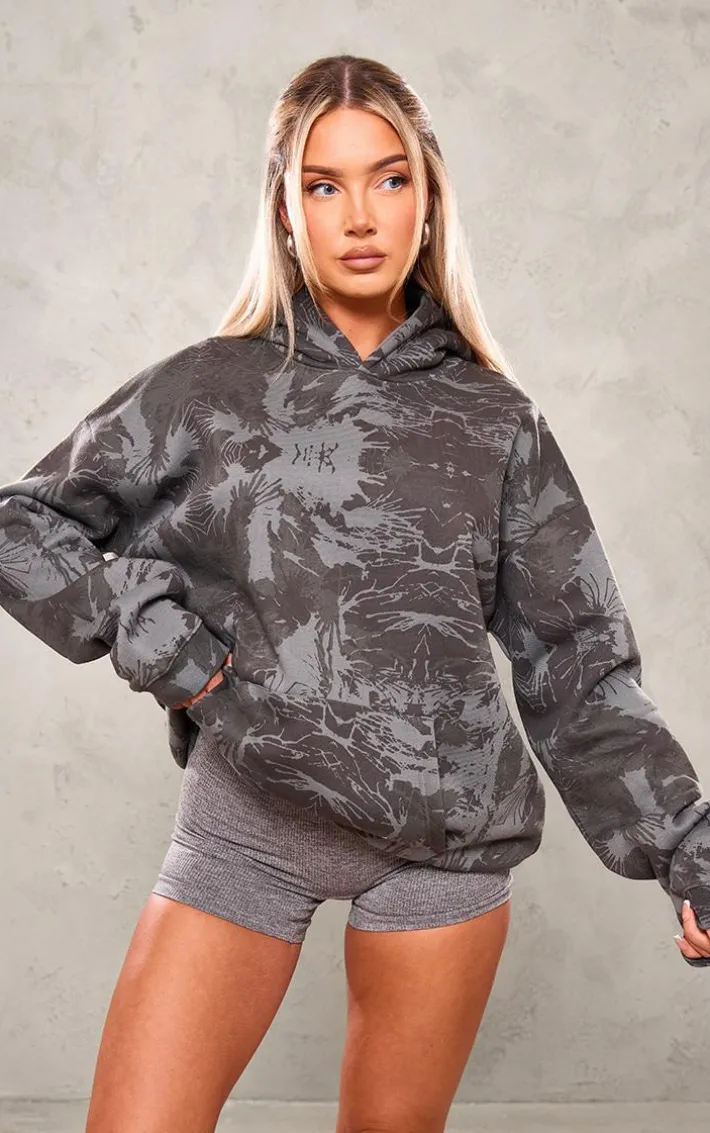 Add a little edge to your outfit of the day with this charcoal splatter print hoodie, you’re sure to be earning all the compliments on those chilled days and beyond. Made using a charcoal hue material with a splatter print and a relaxed fit, this hoodie just went straight to the top of your hit list. Team with fitted shorts, sneakers and your fave accessories for a fresh finish.