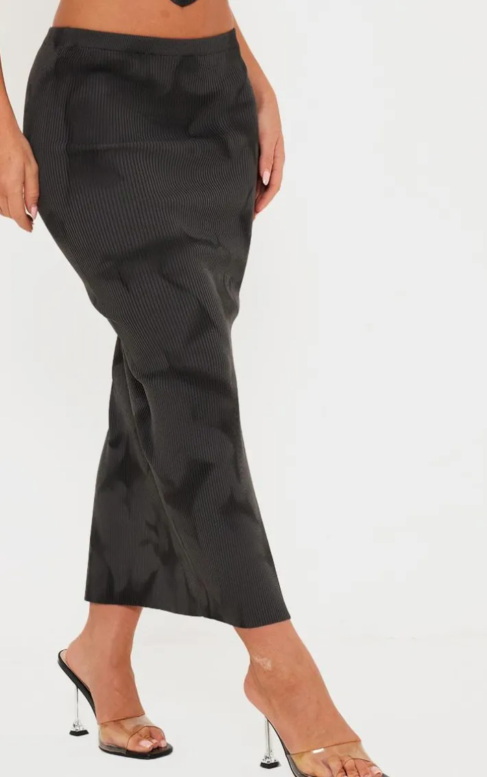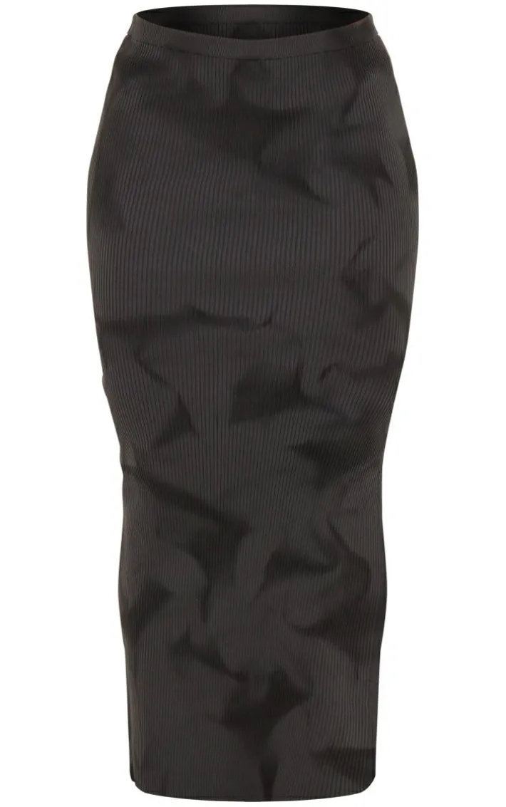 Your weekend fit is finally sorted with this charcoal tie dye rib knit side split maxi skirt, you’re sure to be at the center of attention. It is made using a charcoal tie dye rib knit material with a side split design and a maxi length. Style with the matching top, a faux fur jacket and your fave heels to have heads turning for all the right reasons.
