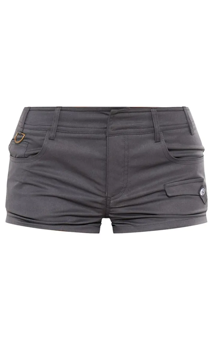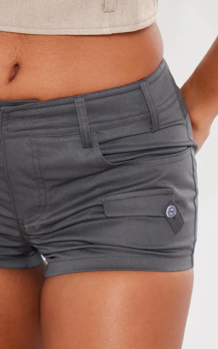 Switch up your style game for the new season in these charcoal will low waist cargo shorts. Brought to you in a charcoal hue twill material with a low waist fit and a cargo design, how can you resist? Style these cargo shorts with a top, boots and gold accessories for a look that won’t go unnoticed.
