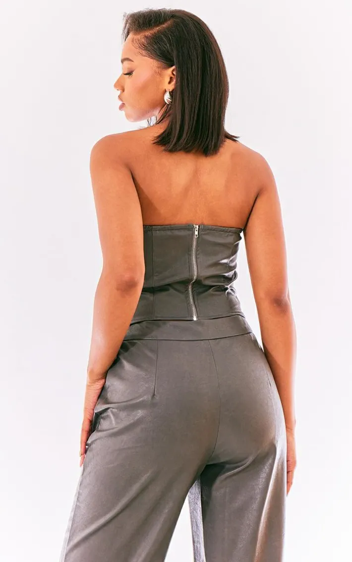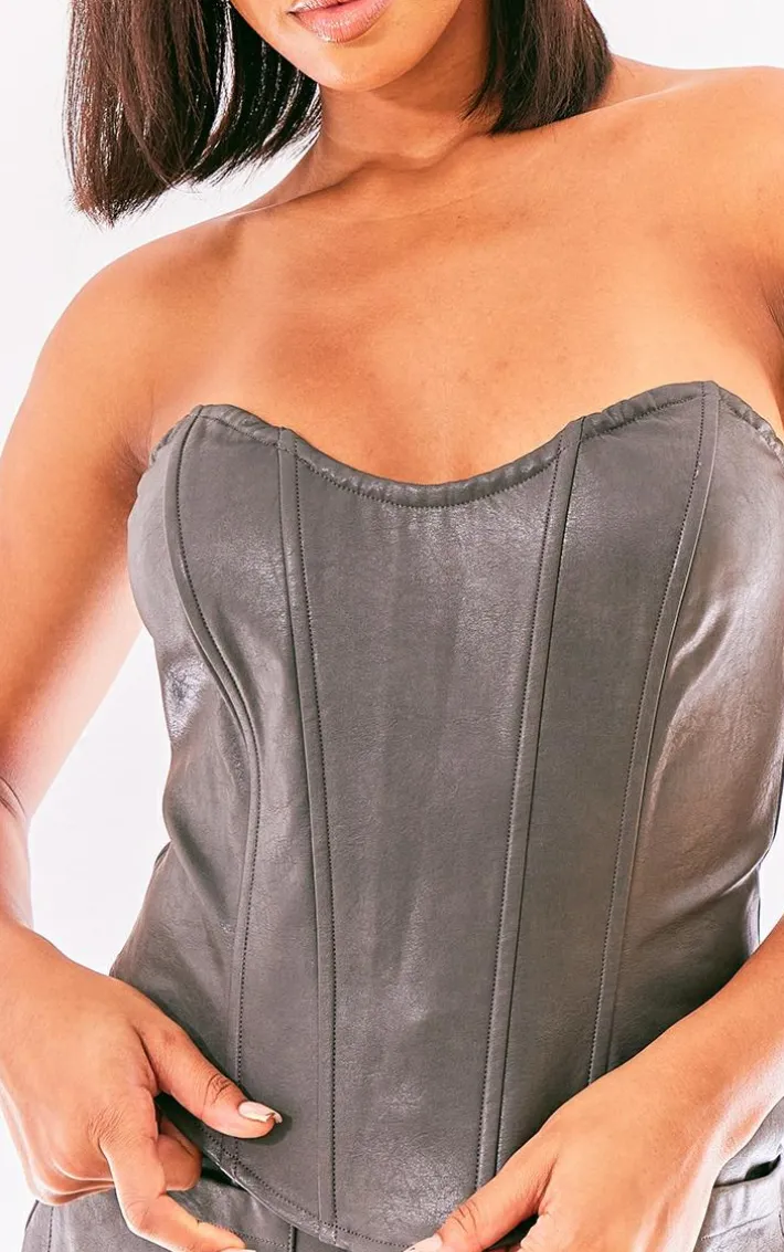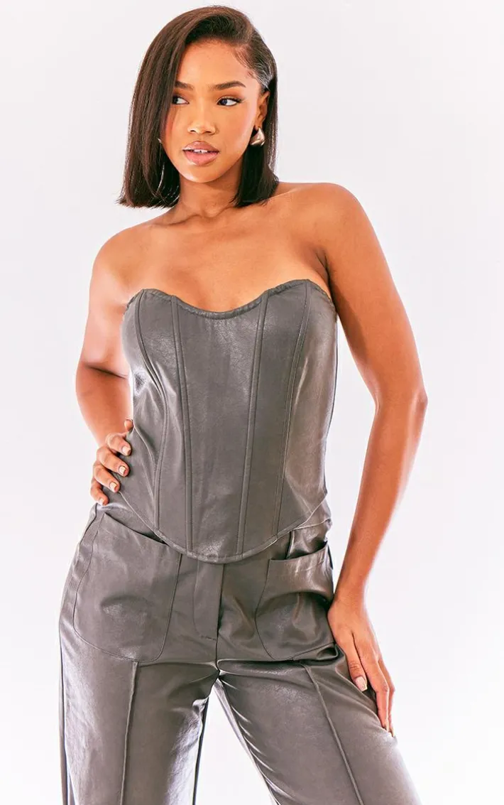 You can never have too many corsets , that’s why we are obsessing over this charcoal washed faux leather boned seam detail bandeau corset. Brought to you in a charcoal faux leather material with a boned seam detail, you will be feeling effortlessly chic all season long. With a bandeau fit, this corset is all you need to step out in style. Team with your fave accessories for a fool proof finish like no other.