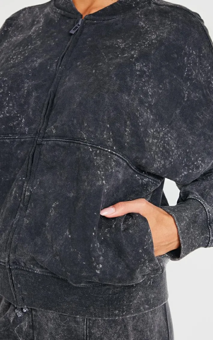 Stand out from the rest even on those off-duty days with this charcoal washed seam detail zip uo bomber style Sweatshirt. Brought to you in a charcoal washed material with a seam detail and a zip up fastening, what more could you want? Team this bomber style Sweatshirt with the matching sweatpants and your fave sneakers to elevate your look even further.