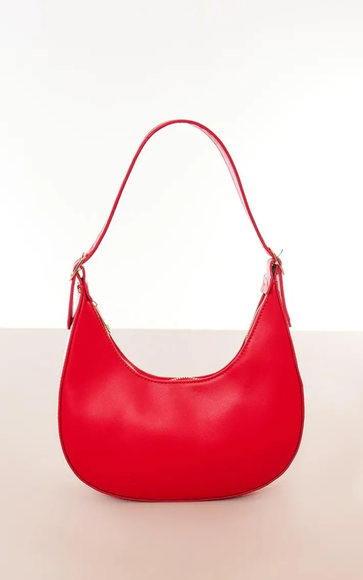 Nail major trends this season with this cherry red curved PU shoulder bag. Brought to you in a cherry red PU material, you are sure to stand out in every room with this unreal bag. Its curved design adds all the edge to any look. Team with your fave jeans, a cropped tee and a statement jacket to finish off the look that will have everyone talking.
