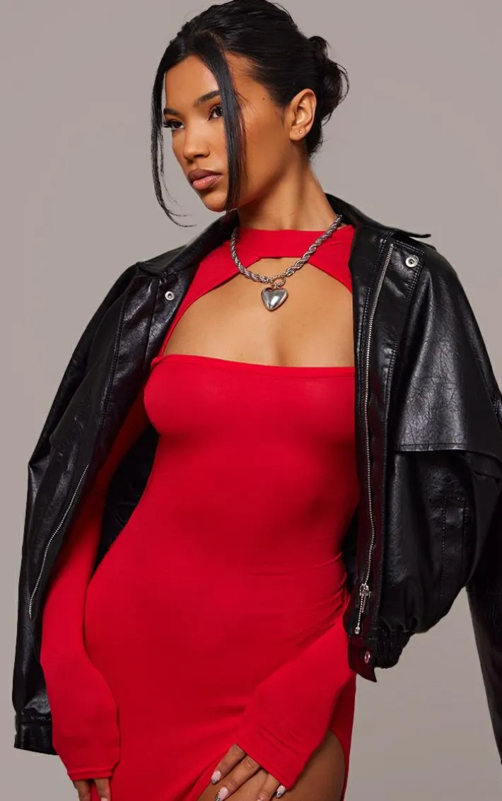 Stand out from the rest with this cherry red viscose high neck split maxi dress. Brought to you in a cherry red viscose material with a high neck design, what’s not to love? This maxi dress has a split detail, perfect for those day to night looks and beyond. Team this unreal dress with some knee high chunky boots to make a statement wherever you step foot.