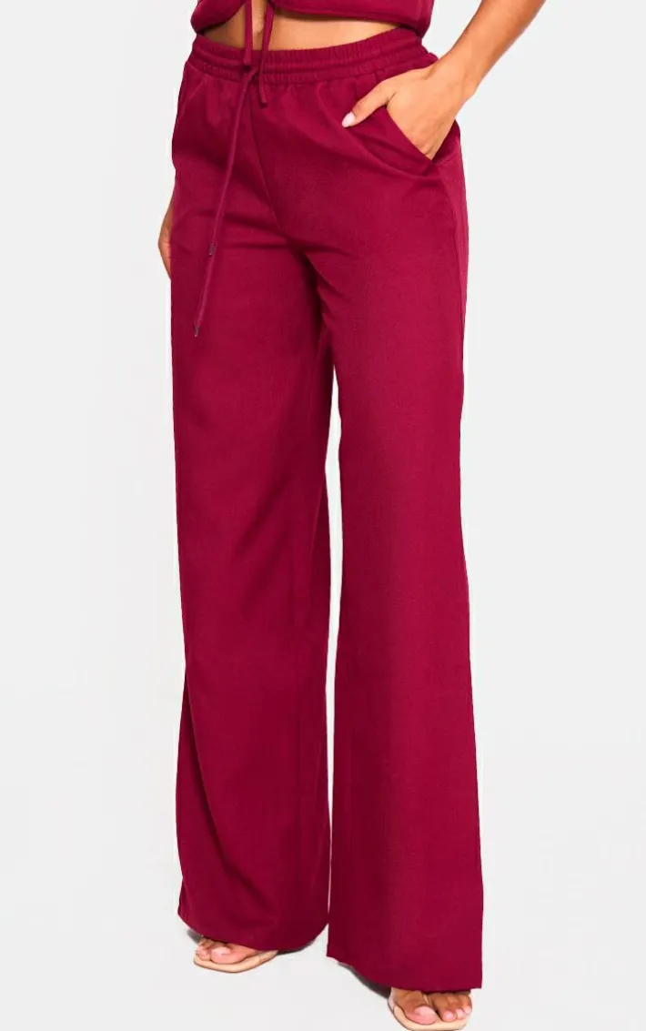 Make sure your new season look stays on trend these cherry red woven mid rise wide leg pants. Brought to you in a cherry red hue woven material with a mid rise design and a wide leg fit, how can you say no? Style these cherry red pants with the matching top, heels and gold accessories for a look that is sure to steal all the stares.
