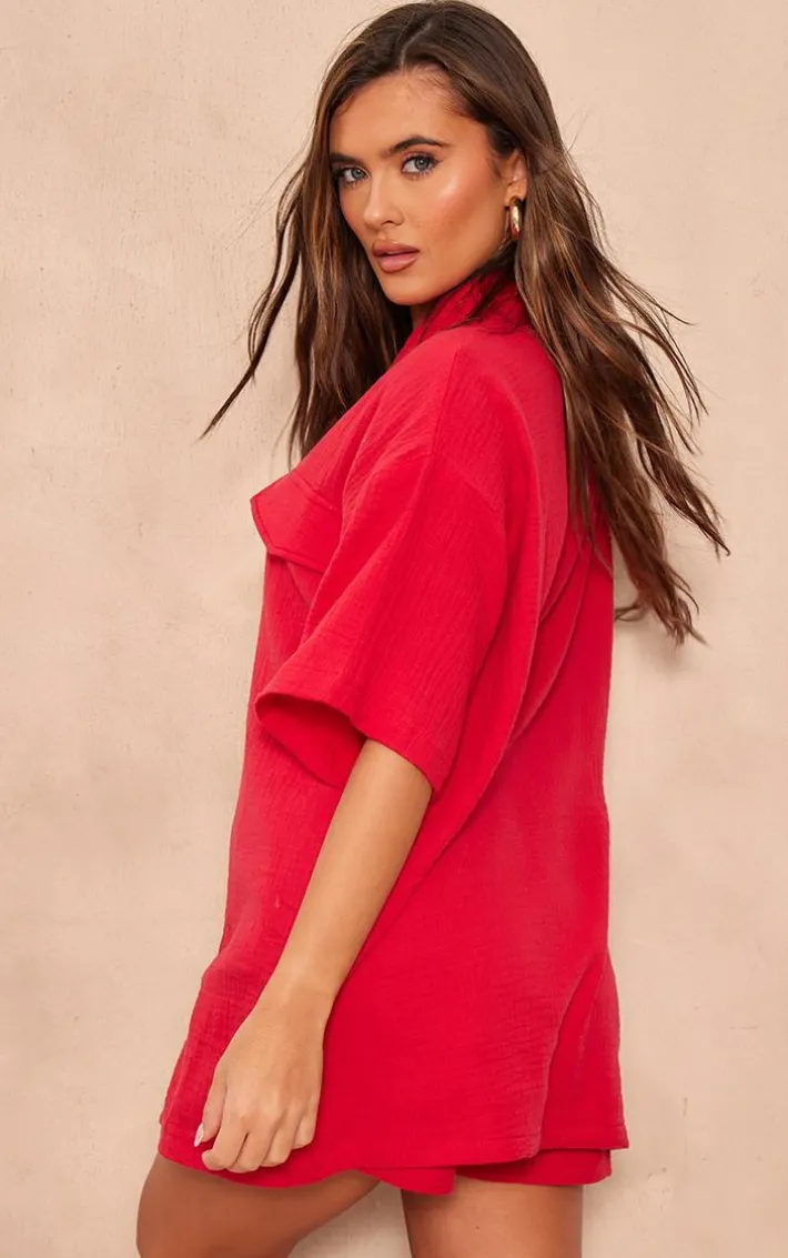 Add some bold and bright hues into your look with this cherry red woven pocket detail short sleeve shirt. This shirt is brought to you in a cherry red woven material with pocket detail and short sleeves, what’s not to love? Complete the look by styling this with the matching shorts, sandals and accessories for an outfit we’re loving.