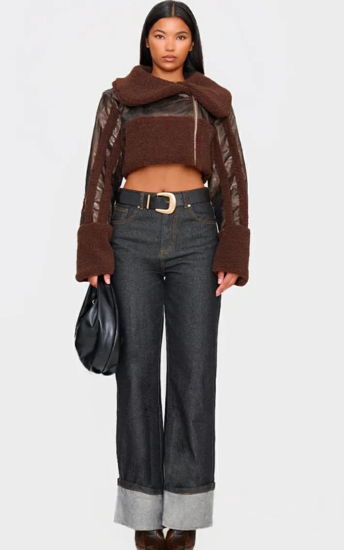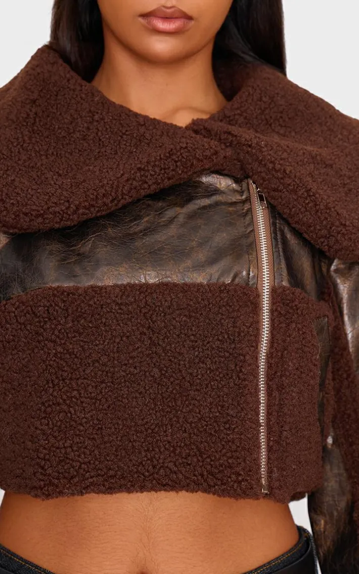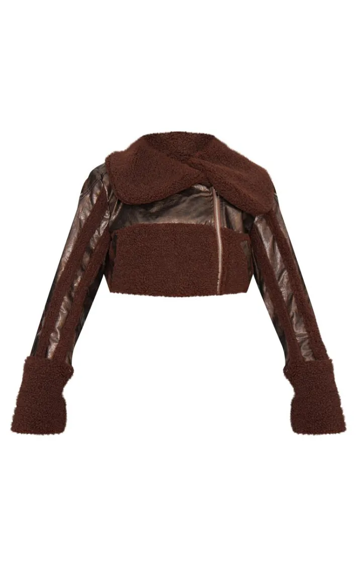 This chocolate borg trim textured look faux leather aviator jacket is here to banish any of your what to wear dilemmas. Brought to you in a chocolate faux leather material with a borg trim and a zip-up front, we can’tget enough. From start to finish this jacket will have you looking totally on-trend. For a next-level look simply style with denim jeans, heeled boots and accessories for a look that will have you setting trends wherever you step foot.