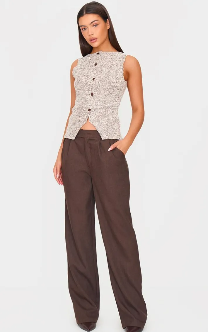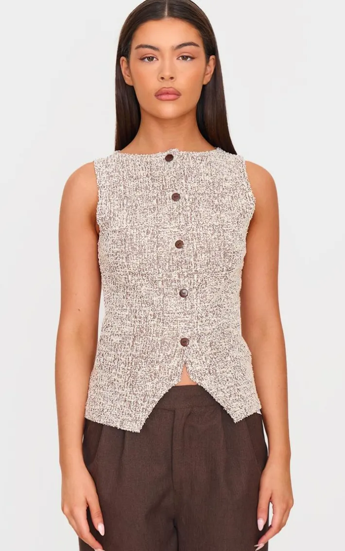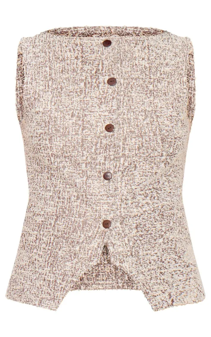 Tap into your edgy side with this chocolate boucle button down waist coat. Brought to you in a chocolate boucle material with a button down fastening, this vest is perfect for those weekend plans and beyond. Team this vest with a pair of jeans and sneakers for a look that will earn you all the styling points.