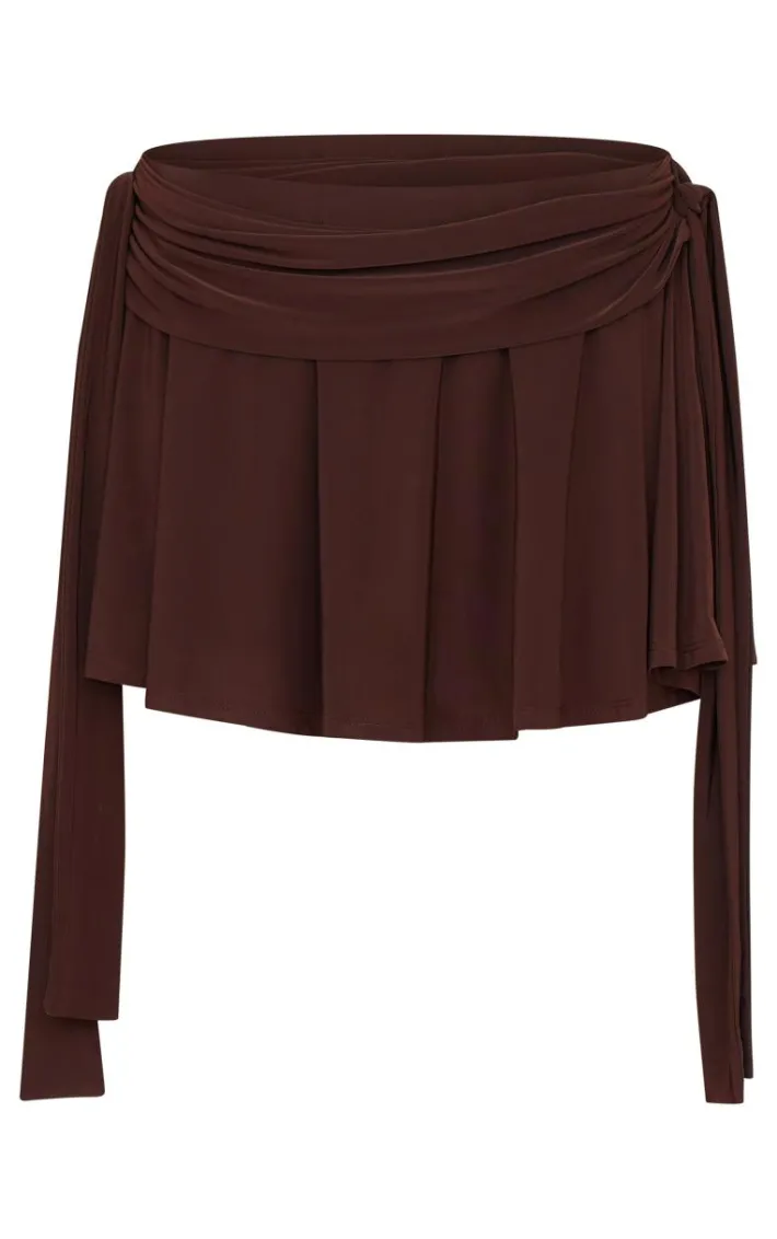 Your ‘what to wear dilemmas’ have been solves with this chocolate brown slinky tie side flippy mini skirt. Brought to you in a chocolate brown hue slinky material with a tie side detail and flippy design, this mini skirt is all the new you need. Style with a white tee and slip on heels for a look like no other.