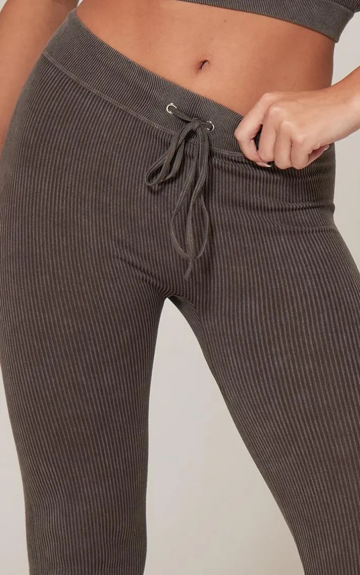 Elevate your comfy collection with these chocolate washed snatched rib tie waist skinny flare pants. Brought to you in a chocolate washed material with a snatched rib design and a tie waist, giving you a flattering fit like no other. Team these skinny flare pants with the matching top and your fave sneakers to finish off the look.