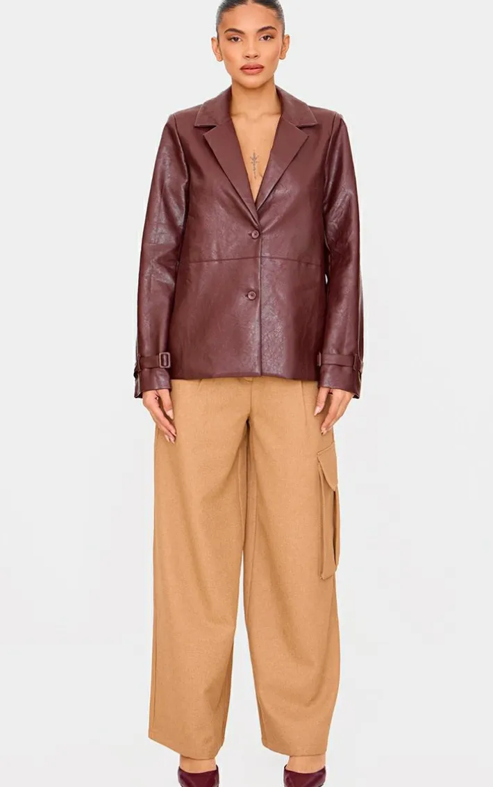 You can never have too many blazers in your collection, that’s why we’re bringing you this chocolate faux leather blazer. With its seasonal chocolate tone, faux leather material and the ultimate blazer fit, what’s not to love? Team with a pair of heels and wide leg tan pants for a look like no other.