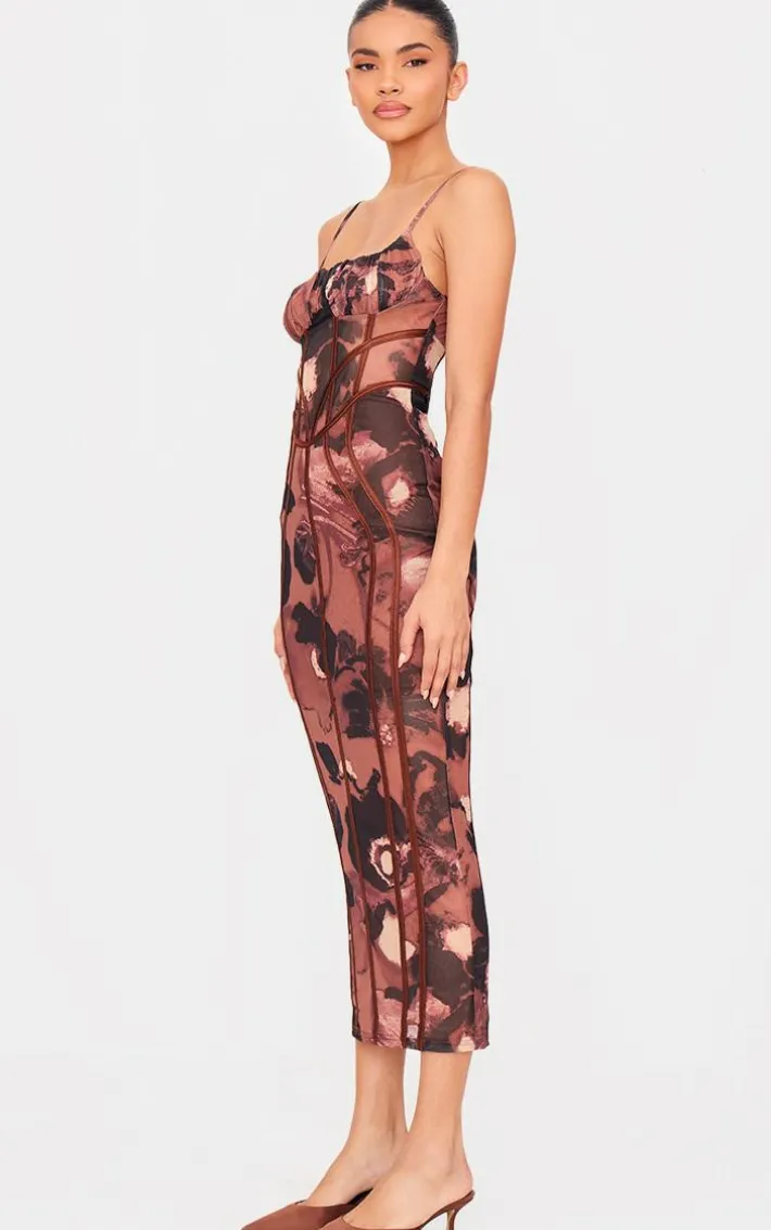 Solve those what to wear dilemmas with this chocolate floral print mesh binding detail midaxi dress. Brought to you in a chocolate mesh material with a floral print design and a binding detail, it’s a definite yes from us. Team this midaxi dress with a pair of court heels and minimal accessories to feel chic this season.