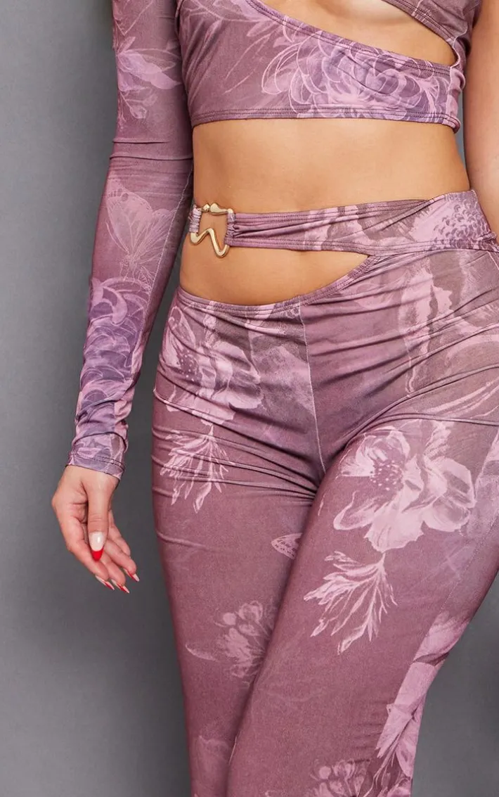 Get ready to have all eyes on you with these chocolate floral slinky cut out wide leg pants. These pants are brought to you in a chocolate floral slinky material with a cut-out design and a wide leg fit, what’s not to love? You’ll sure set trends with these. Complete the look by styling this with the matching top, high heels and accessories for a flawless finish.