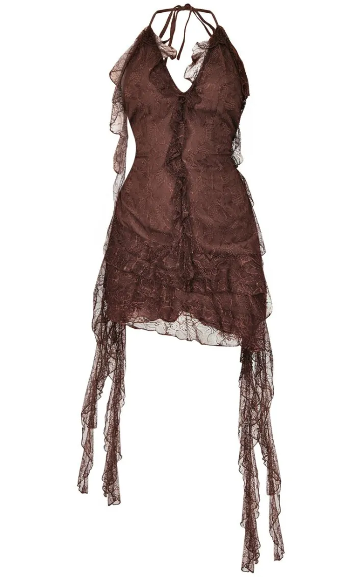 Keep your look fiercely feminine with this chocolate lace frill detail halterneck backless bodycon dress. Brought to you in a chocolate lace material with a frill detail and a halterneck design, you won’t blend in. this backless bodycon dress will earn all the styling points. Pair with heels and your fave accessories for an Insta worthy look.