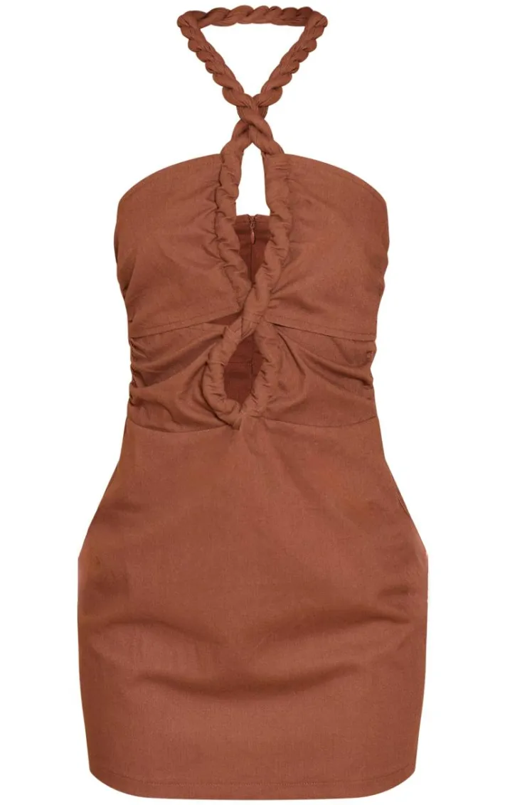 Turn heads for all the right reasons in this chocolate linen look plait detail bodycon dress. Brought to you in a chocolate hue linen look material with a plait detail, this bodycon dress is at the top of our wish list. Style with nude heels and gold accessories for a look like no other. It’s a yes from us.