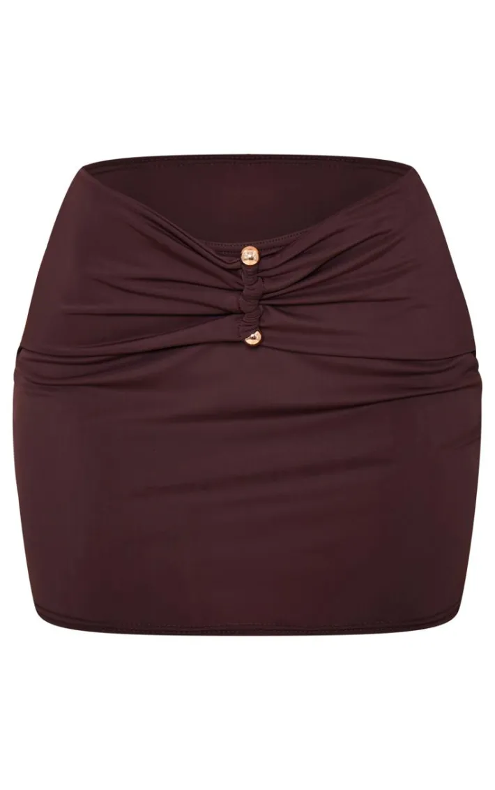 Create a look worthy of your weekend plans with this chocolate matte touch ruched micro mini skirt, we’re in love. This skirt features a chocolate hue matte touch material with ruched detailing and a micro mini length. Just add the matching top, heels and your fave accessories to really show off your confident side.
