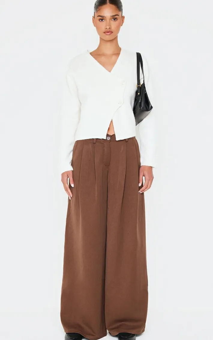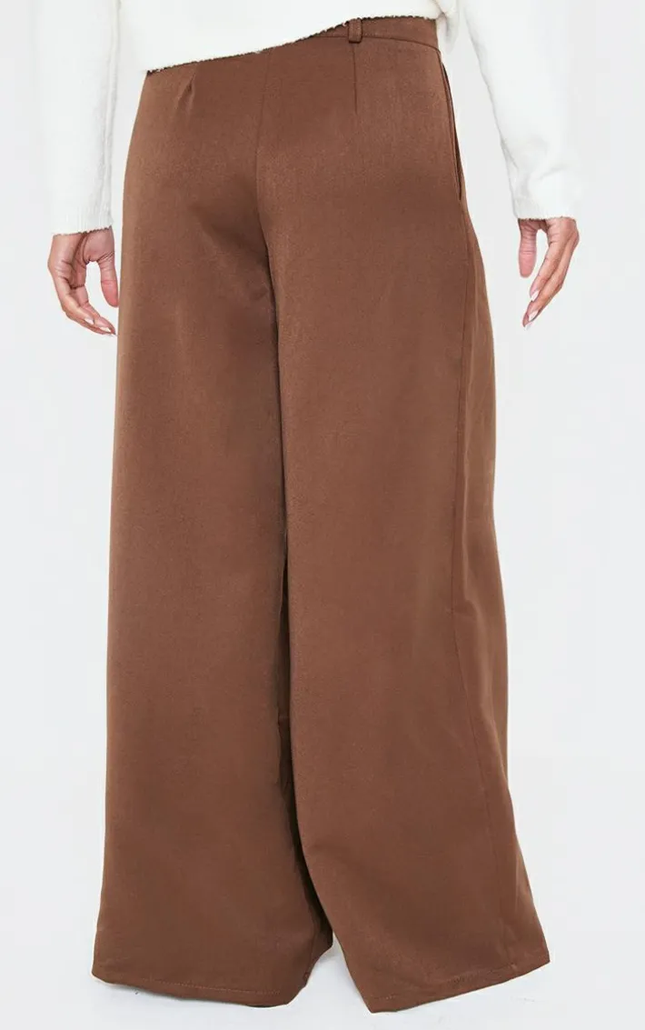 Keep it chic in these chocolate mid rise wide leg woven pants. Brought to you in a chocolate woven material with a mid rise design and a wide leg fit, how can you say no? Style these wide leg pants with a cardigan and loafers for a look that is sure to make heads turn.