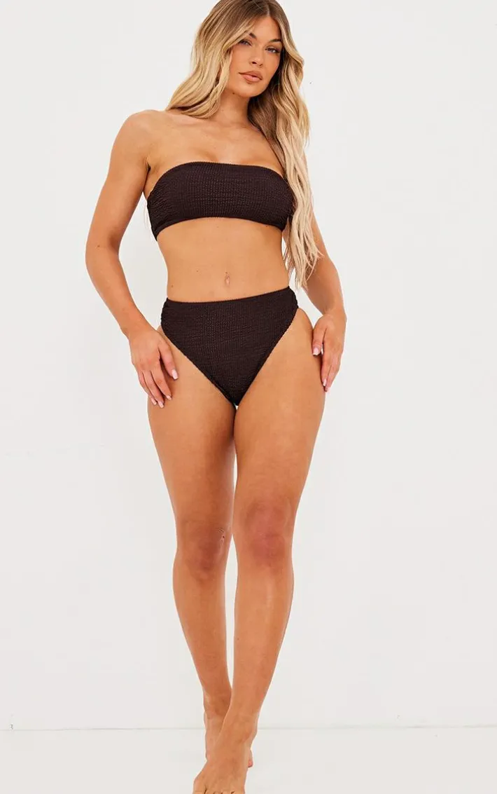 Get ready to show off your glow in these unreal bikini bottoms. Featuring a chocolate crinkle material with a high waisted fit and a high leg design. Style with a matching top and your fave shades for a look that is perfect for a day by the pool.