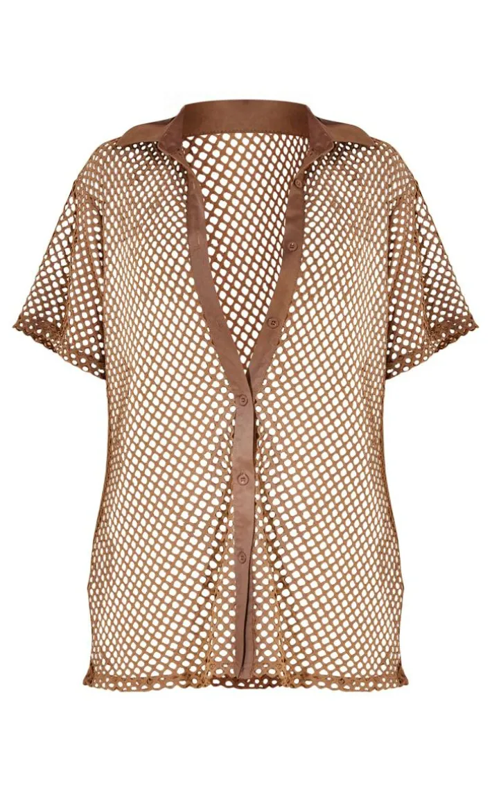 Make a statement this season with this chocolate net oversized short sleeve beach shirt. This unreal shirt is made from a chocolate hue in a net material that is sure to add some edge to your look. With an oversized fit and a short sleeve design, what more could you need ? Team with the matching bottoms and you fave bikini to finish off this poolside look that will have heads turning.