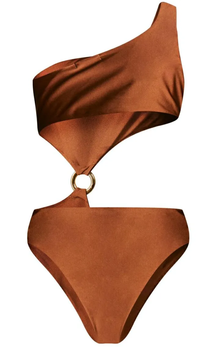 Turn heads for all the right reasons this season with this chocolate one shoulder o ring cut out swimsuit. Brought to you in a chocolate hue material with a one shoulder style and o ring detail, how could you not be in love? This swimsuit also features a cut-out design which shows off your unreal figure. Simply add your fave accessories and chunky sandals for a look that everyone will be obsessed with.