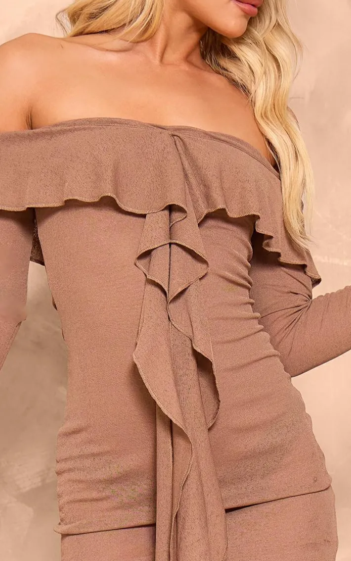 When the weekend calls so does this chocolate onion skin frill detail bodycon dress. Brought to you in a chocolate onion skin material with a frill detail, this bodycon dress is everything you need and more. Style with your fave sandals and gold accessories for a luxe look we can’t stop staring at.