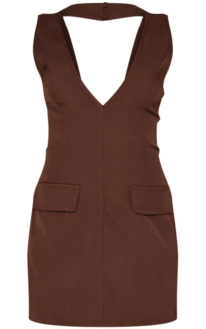 Introducing this chocolate plunge pocket detail mini dress as this season’s must-have. Brought to you in a chocolate hue material with a plunge neckline and pocket detail, this mini dress is all the new you need. Style with slip on heels and simple accessories for a chic finish we can’t take our eyes off.