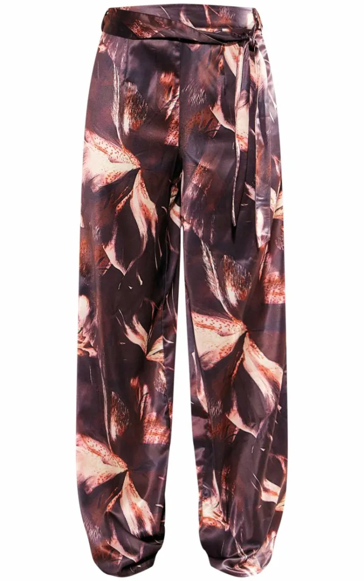 You are guaranteed to make a serious style statement in these chocolate printed satin tailored belted wide leg pants. Brought to you in a chocolate hue printed satin material with belted detailing and a wide leg fit, how can you resist? Style these tailored pants with the matching top, heels and statement accessories for a look that will steal all the stares.