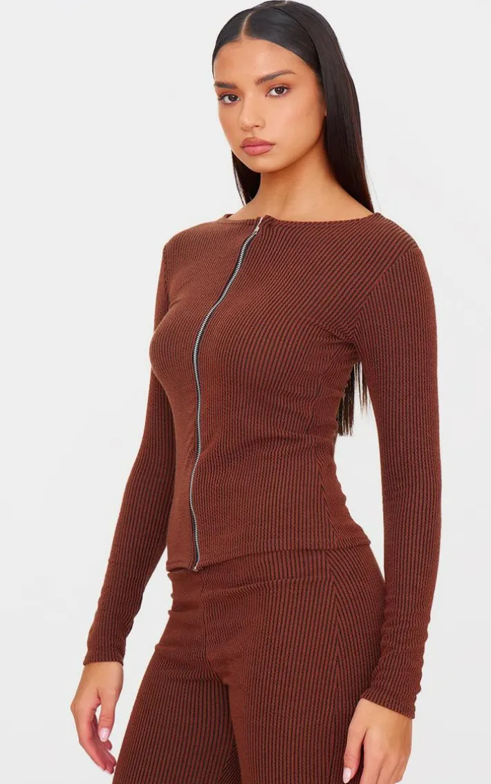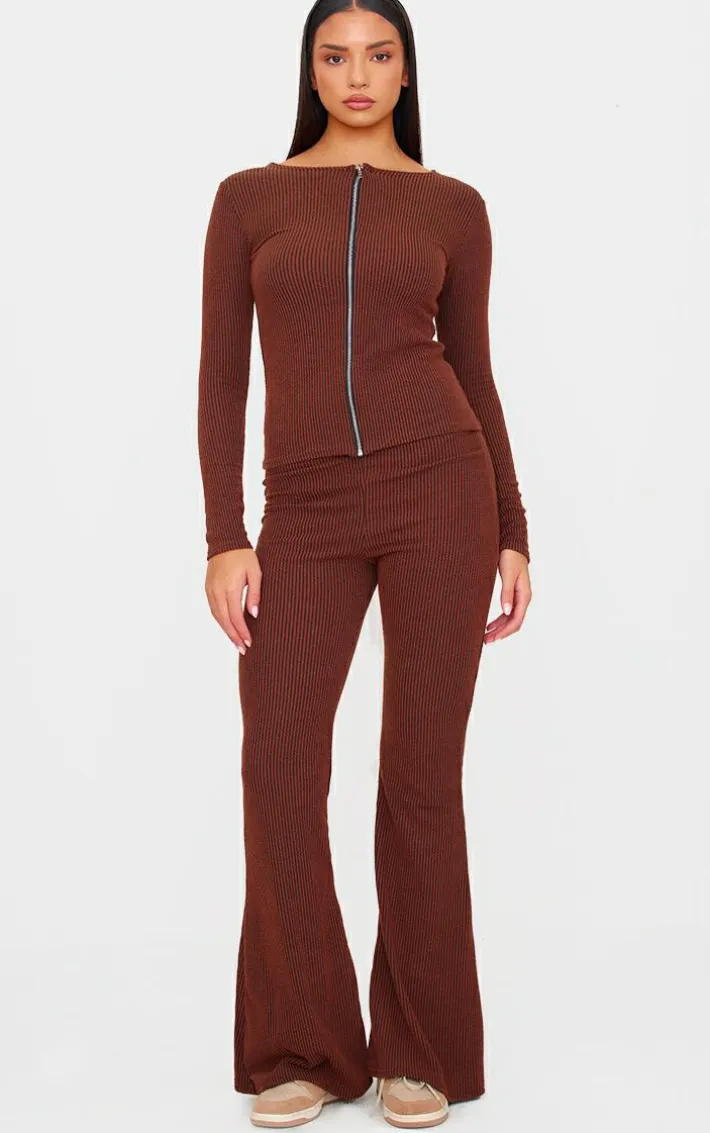 Elevate your off-duty wardrobe with this chocolate rib longline zip up top. Brought to you in a chocolate hue rib material with a longline fit and a zip up fastening, how can you resist? Pair this rib top with the matching flares and sneakers for a look you will be reaching for again and again.