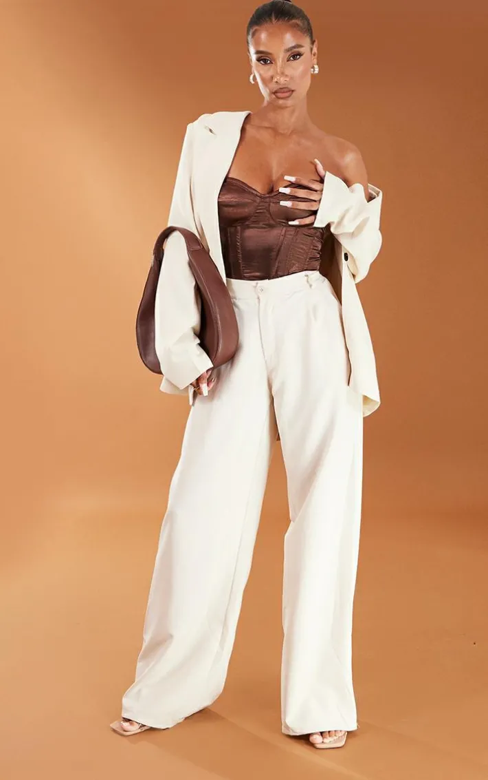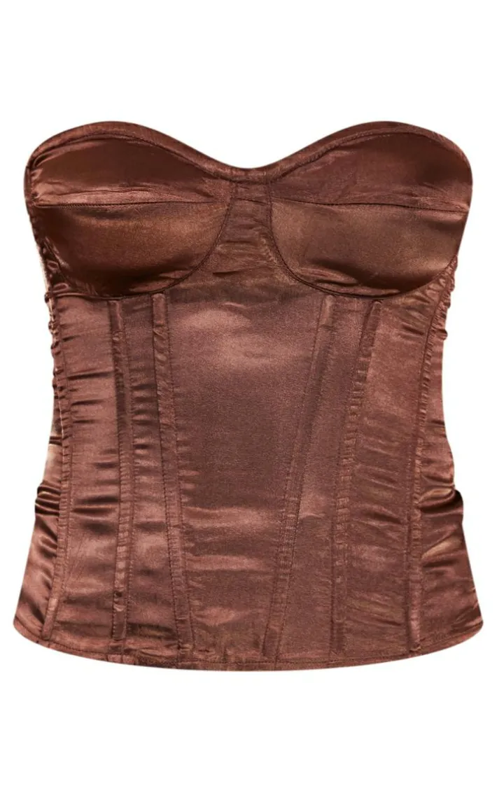 Give your weekend look a serious update with this satin corset top. Featuring a chocolate hue satin material with a bandeau neckline and a figure-flatteirng corset fit, we just can’t get enough. Perfect for any occasion, this structured corset top is sure to take any look to new heights. Style with printed faux leather bottoms, heels and statement accessories for a look that will steal the stares for all the right reasons.