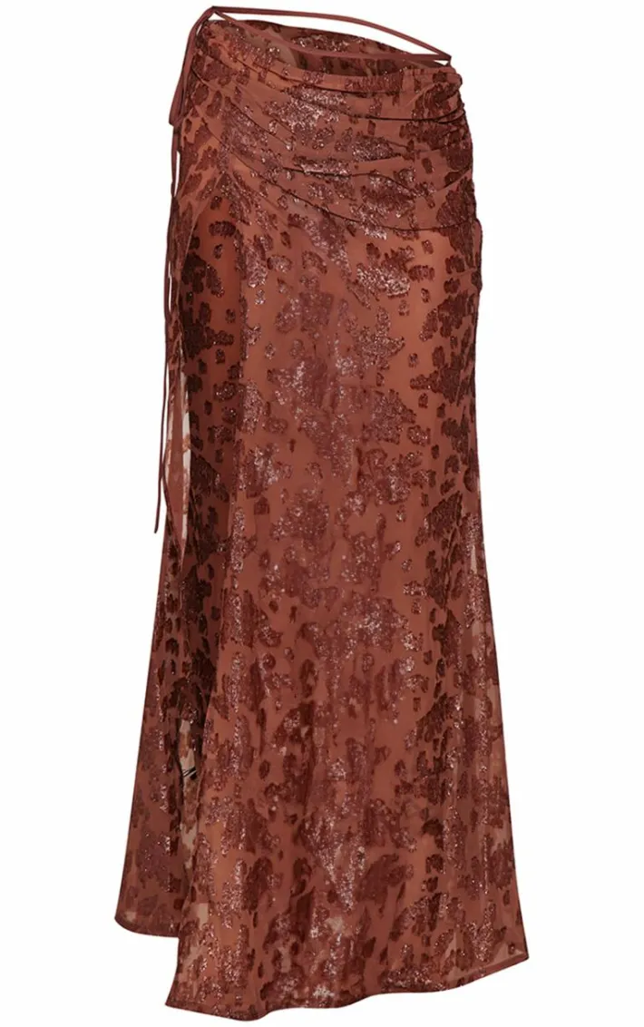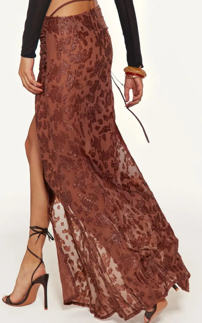 Make heads turn in this chocolate sheer floral applique wrap detail maxi skirt. Brought to you in a chocolate sheer material with a floral applique design, wrap detailing and a maxi length, we are obsessed. Style this maxi skirt with your fave top, heels and accessories for a look that won’t be forgotten.