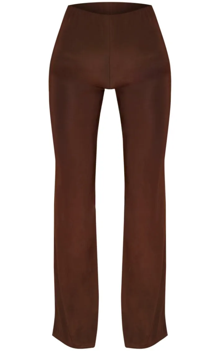 Show off your shape in these chocolate slinky high waisted wide leg pants. Brought to you in a chocolate hue slinky material with a high waisted design and a wide leg fit, what more could you want? Pair these slinky pants seamlessly with the matching top, heels and gold accessories for a look they won’t be able to take their eyes off.