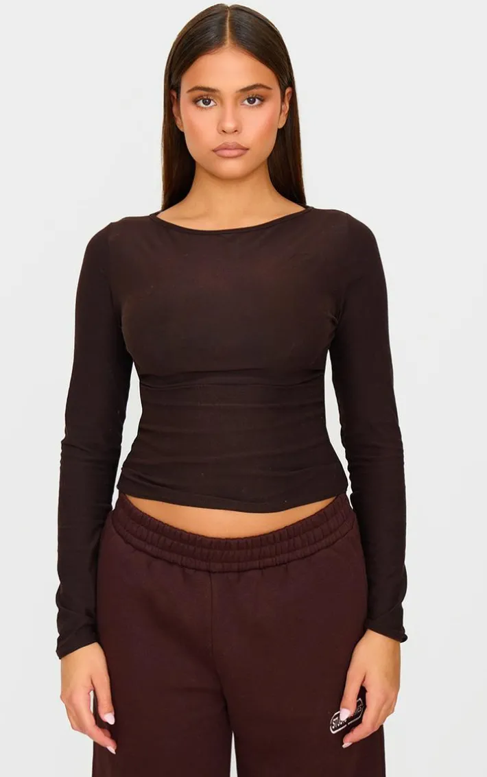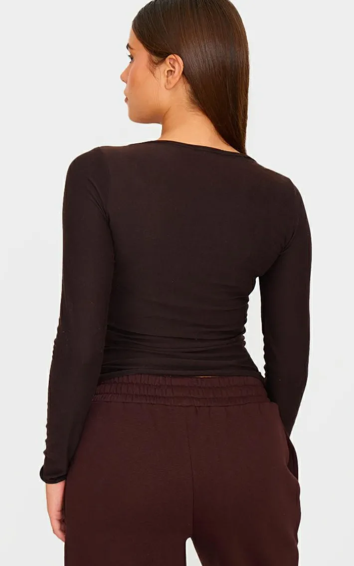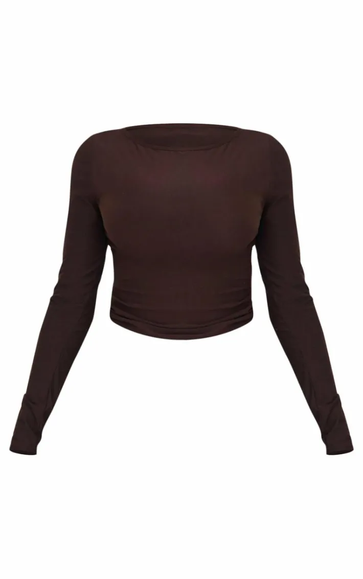 Give your everyday essentials a serious upgrade with this chocolate soft touch boatneck long sleeve top. Brought to you in a chocolate soft touch material with a boatneck design and long sleeves, what more could you need? Style this long sleeve top with matching hue sweatpants and sneakers for an off-duty look you will be reaching for again and again.