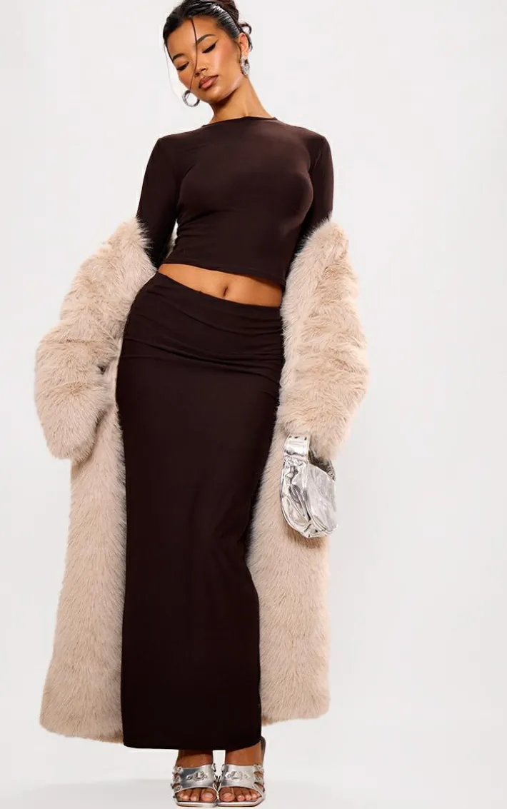 Make this chocolate soft touch longline sleeve top your new go-to for those off-duty days and beyond. Brought to you in a chocolate hue soft touch material with long sleeves and a longline fit, what more could you ask for? Keep it casual and team this long sleeve top with the matching skirt, sneakers and simply accessories for an effortless chic everyday look we’re loving.