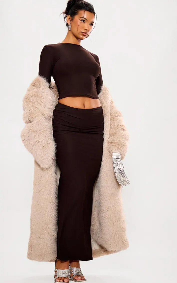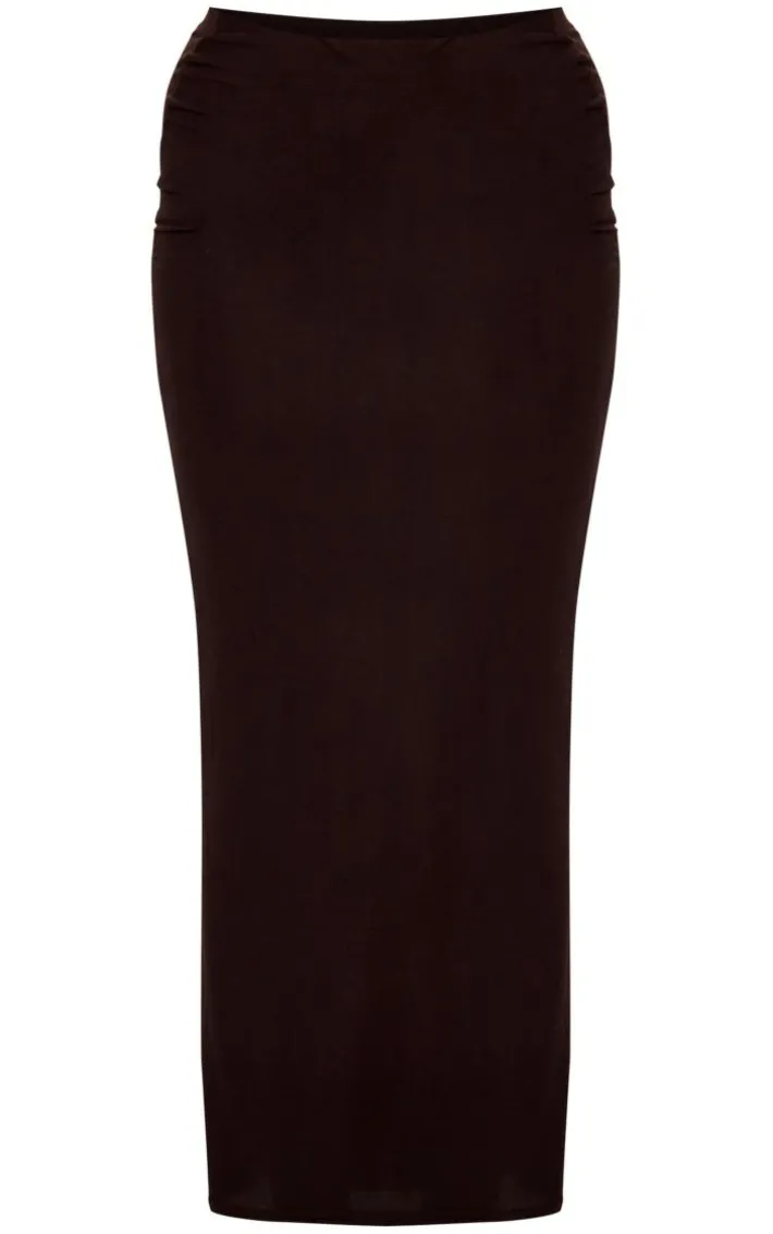 This chocolate soft touch maxi skirt is a must-have for your weekend wardrobe and you won’t want to miss out on this. Made from a chocolate soft touch material with a low-rise waist and a figure-flattering fit, what’s not to love? This maxi skirt is sure to bring all the glam vibes to your look and is sure to always nail the dress code. Team with the matching top, a faux fur coat and clear heels for a look that won’t go unnoticed.