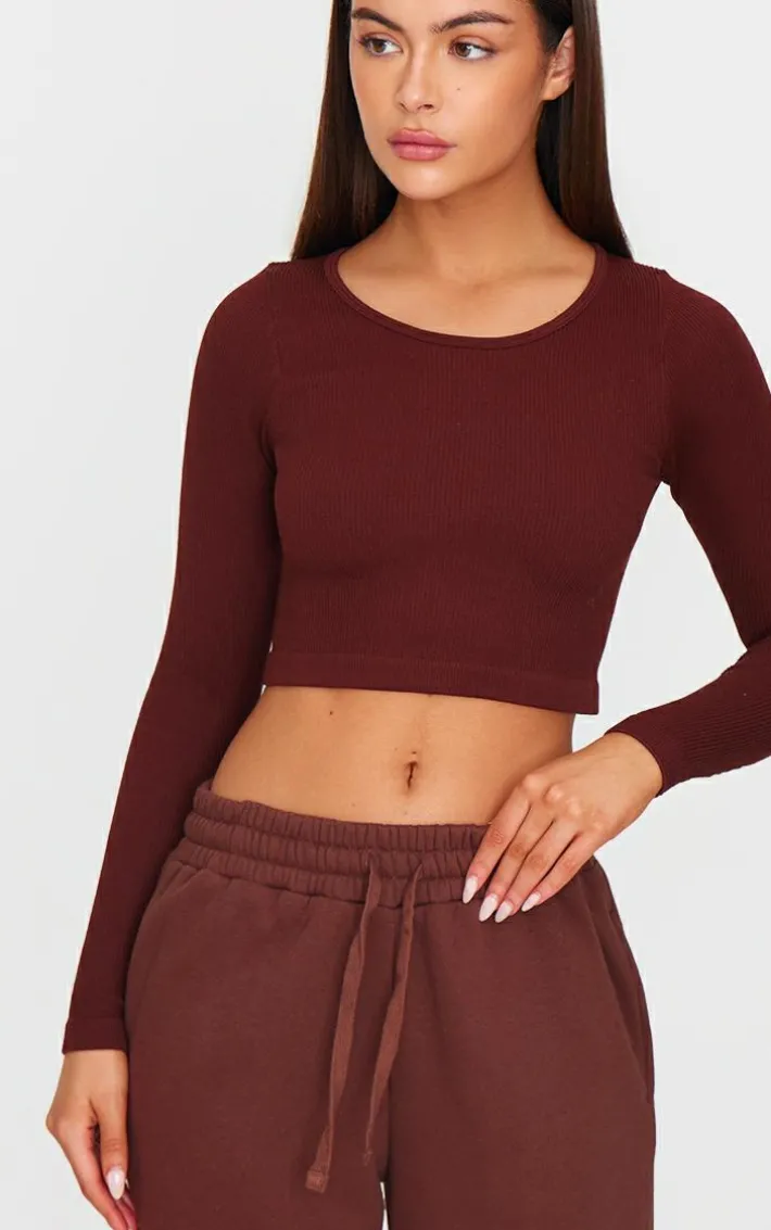 We are obsessing over this chocolate structured snatched ribbed round neck long sleeve crop top right now. Brought to you in a chocolate hue snatched ribbed material with a round neck design, long sleeves and a cropped length, what’s not to love? We love this styled with the matching hue wide leg pants, fresh kicks and simple accessories to finish off the look.