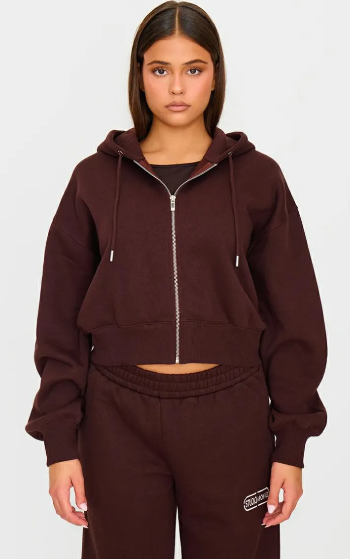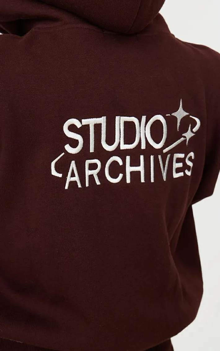 Elevate your off duty look with this chocolate studio archives embroidered zip up jacket. Brought to you in a chocolate hue sweat material with a studio archives embroidered detail and zip up fastening, this jacket is all the new you need. Style with the matching sweatpants, fresh kicks and simple accessories for a laid back look we’re loving.