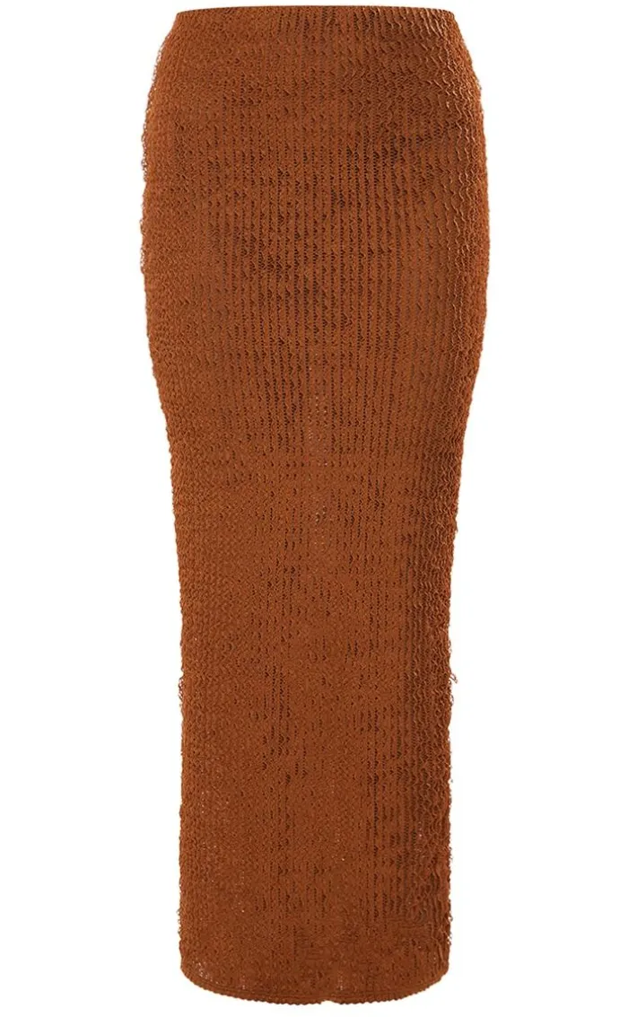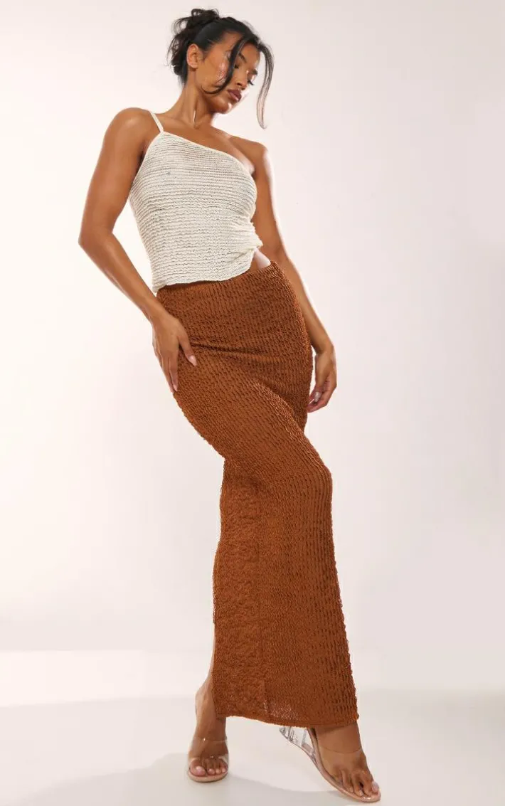 This chocolate textured jersey maxi skirt is here to solve all of your weekend wardrobe dilemmas. Brought to you in a chocolate hue textured jersey material with a flattering maxi fit, what more could you ask for? This maxi skirt is sure to take your look effortlessly from day to night. Style with a crop top and clear strap heels for an effortless weekend-worthy look.