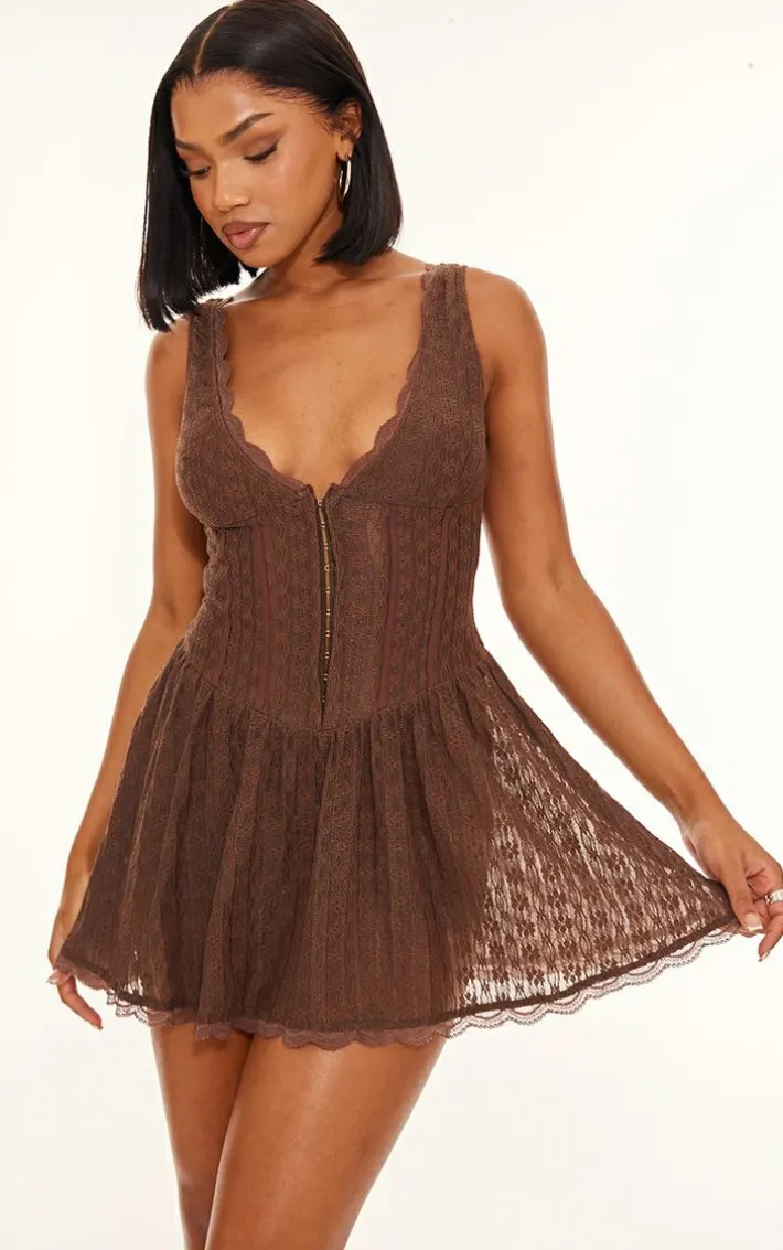 Your wardrobe is calling out for this chocolate textured lace corset detail floaty romper. Brought to you in a chocolate hue textured lace material with a corset detail and floaty design, this romper is dreamy. How can you resist? Style with leopard print heels and gold hoops for a chic finish we can’t get enough of.