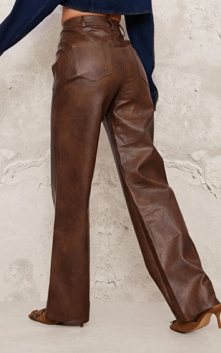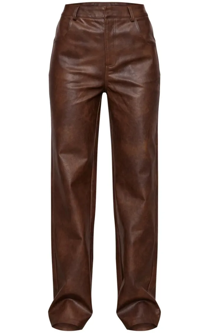 When the weekend calls, so do these chocolate washed faux leather straight leg pants. Brought to you in a chocolate washed faux leather material with a straight leg design, what more could you want? These unreal pants are the ultimate must have for those weekend plans and beyond. Team with a cropped tee and your fave heels to finish of the look we are loving.