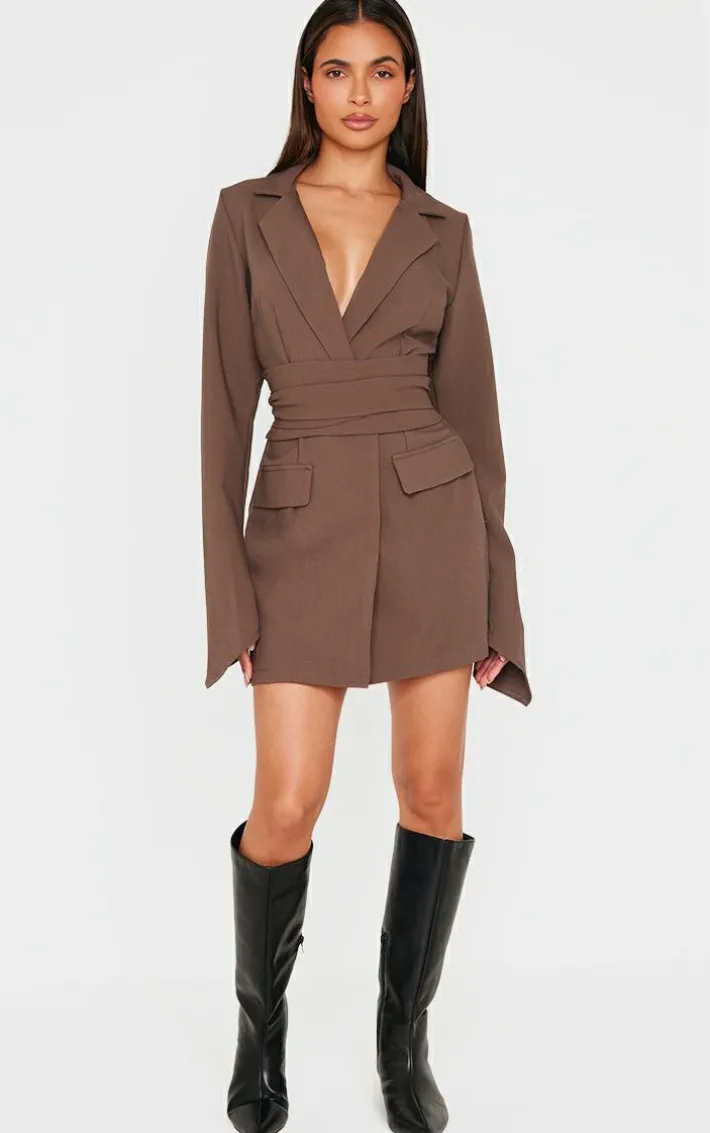 When the weekend calls, so does this chocolate woven wrap belted blazer dress. Brought to you in a chocolate woven material with a wrap belted detail, we are seriously obsessed. This blazer dress is the perfect for those upcoming occasions in your diary. Pair with your fave accessories and a pair of knee high heeled boots to finish off the look we are loving.