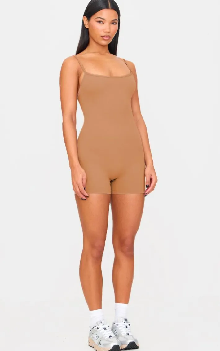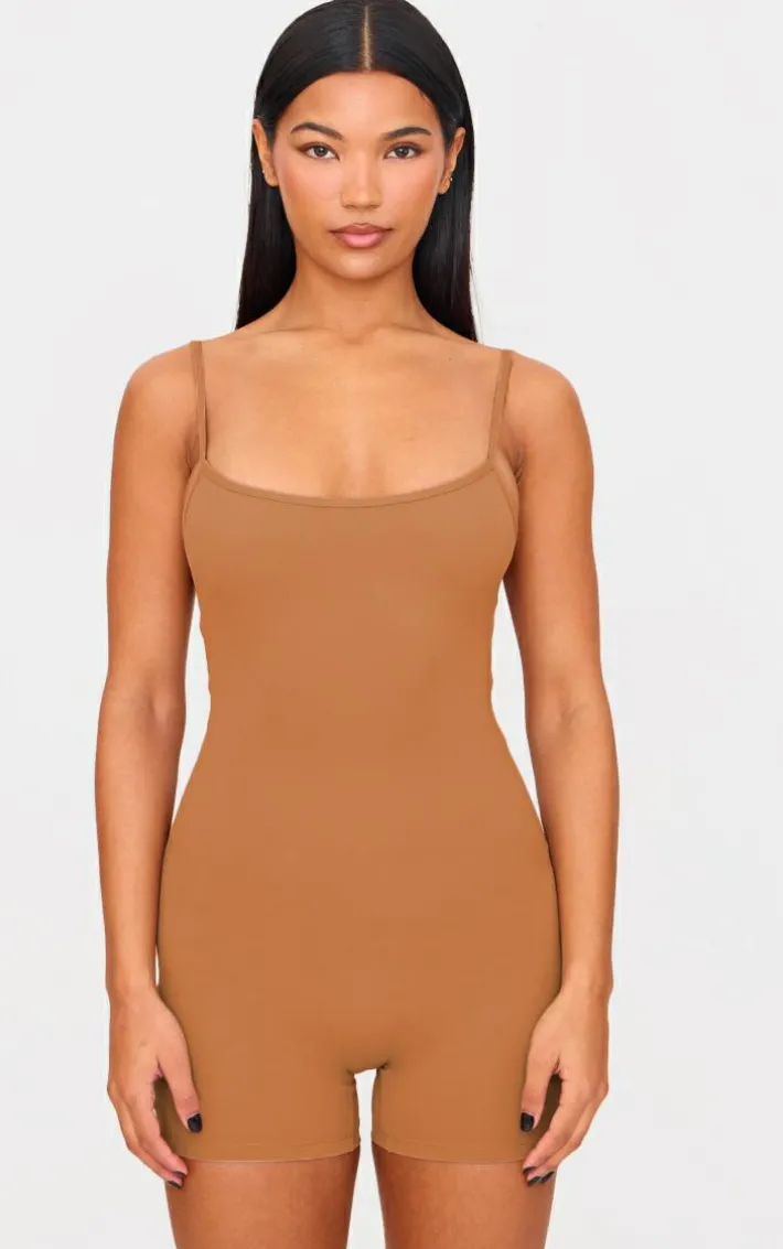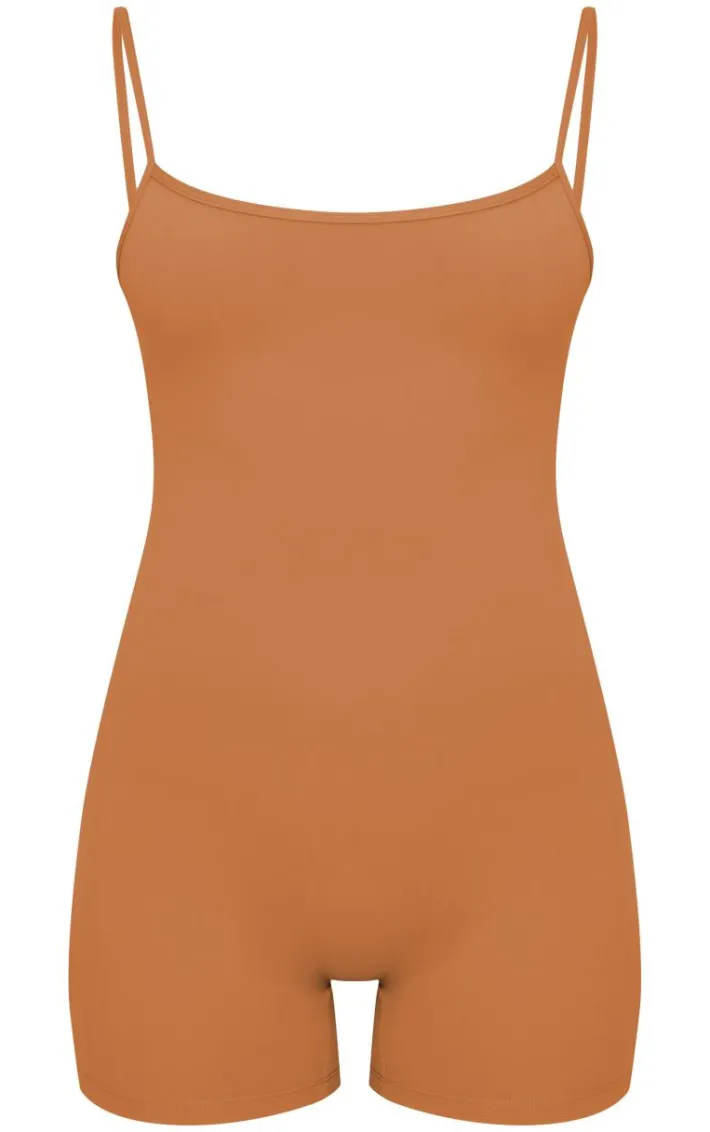 Elevate your work out look with this clay hue sculpt sleeveless short unitard. Brought to you in a clay hue sculpt material with a sleeveless design, this short unitard is a must have. How can you resist? Style with fresh kicks and simple accessories for a look like no other.