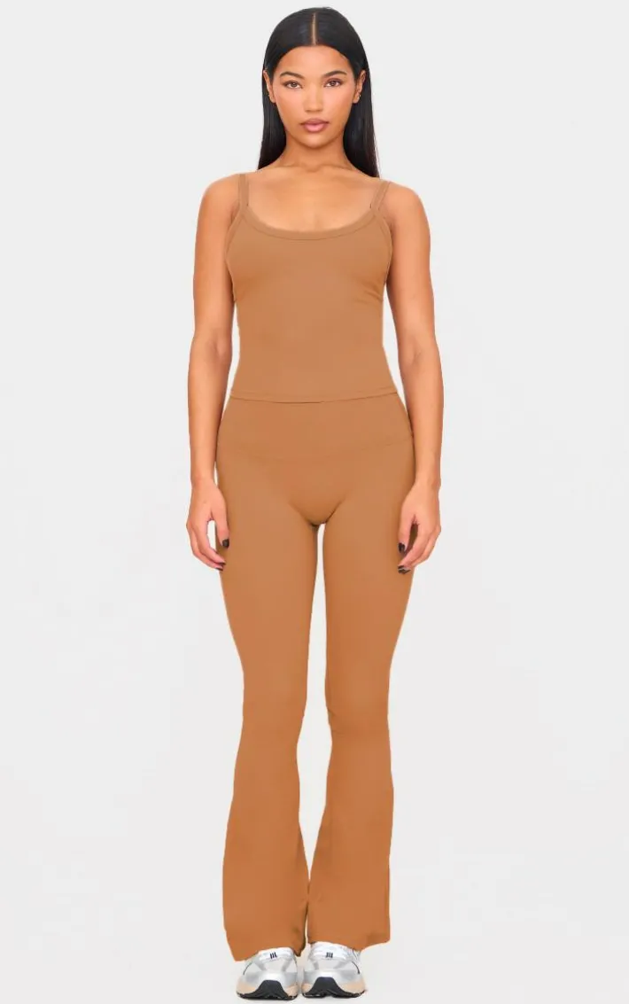 Keep your look comfy with this clay sculpt strappy gym Vest top. Brought to you in a clay sculpt material with a strappy design, this gym Vest top is all you need for those on the go days. Style with the matching comfy pants and your fave sneakers for a look we are loving right now.